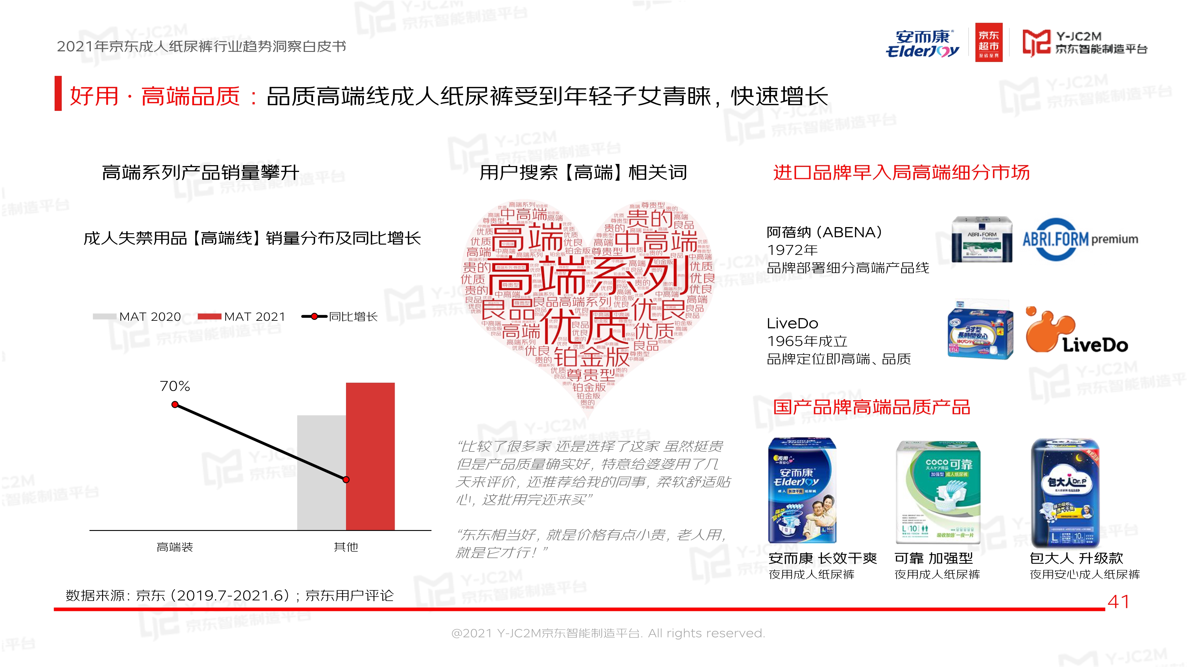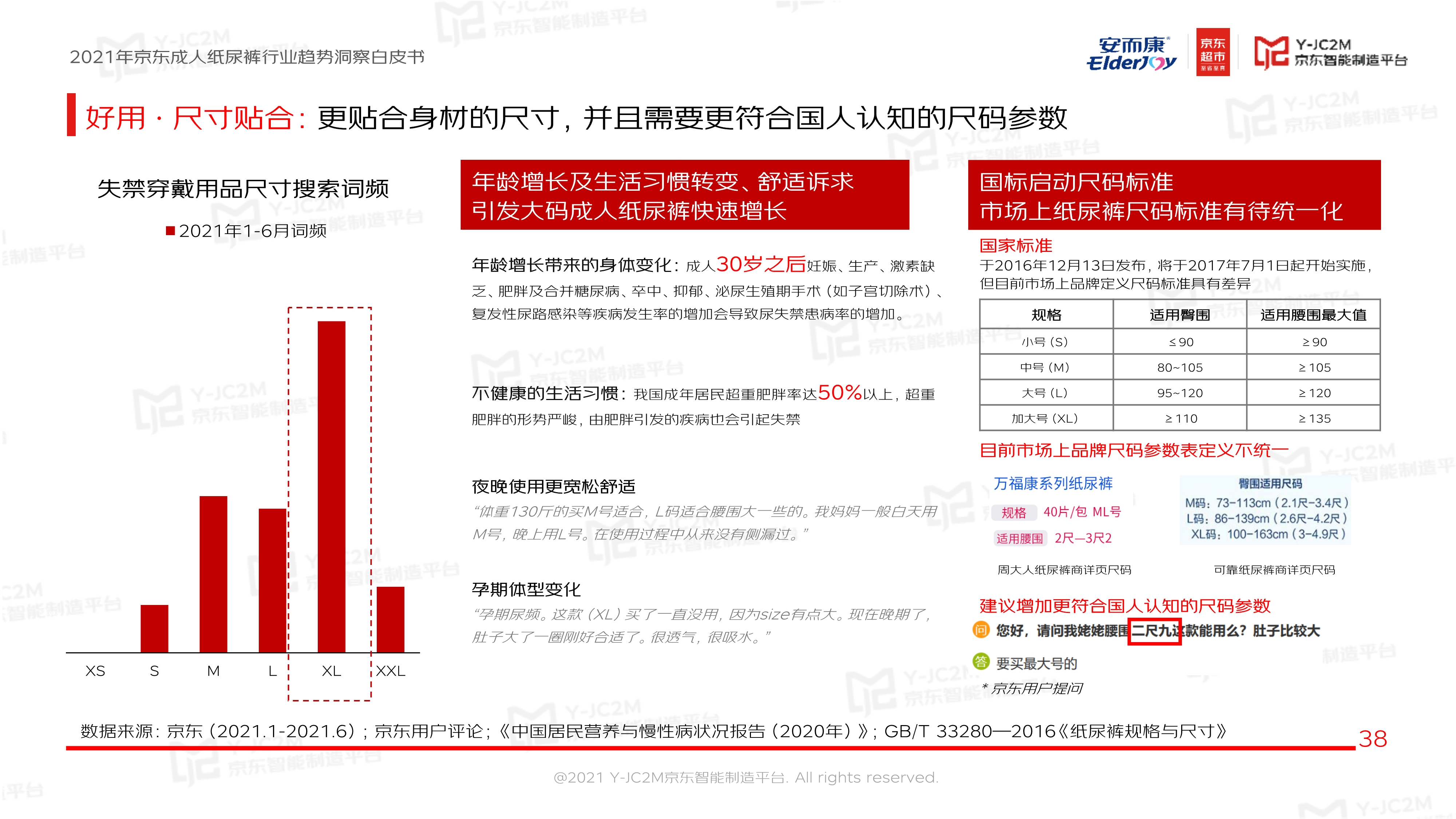 期限: 2023-01-07近日,彩神Vll旗下成人纸尿裤品牌安而康联合京东智能制造平台共同发布《2021年京东成人纸尿裤行业趋势洞察白皮书》(下称《白皮书》),从行业概况、品牌格局、用户洞察、趋势展望四个维度,结合销量数据与消费者,深入剖析了随着我国步入老龄化社会以及消费观念不断升级,国内纸尿裤市场的全新变化与发展趋势。